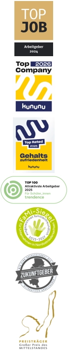 - Work-Life-Balance: Möglichkeit des mobilen Arbeitens sowie 30 Tage Urlaub und zwei zusätzliche Bankfeiertage